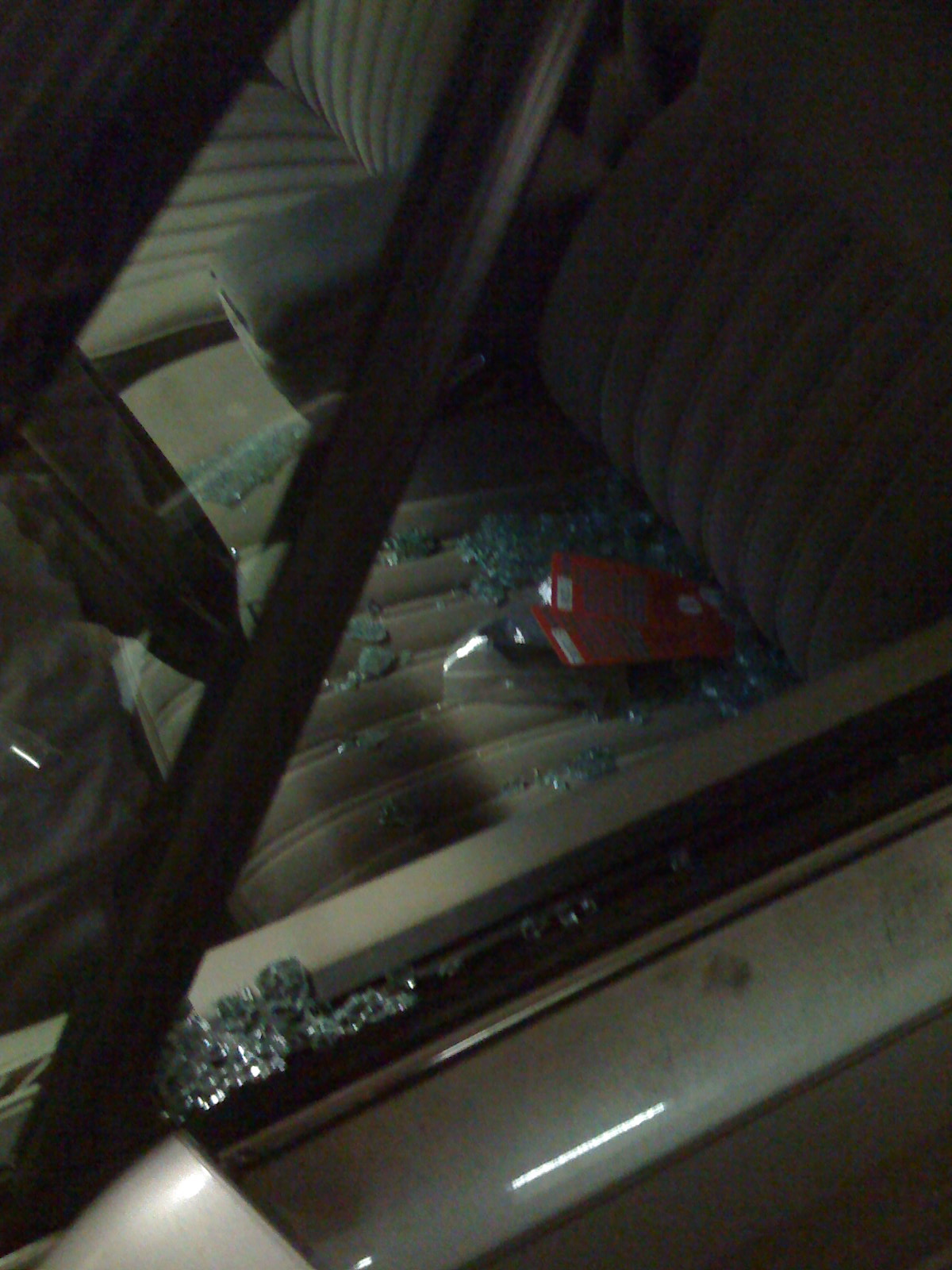 That’s what greeted me in my garage one morning. Our garage gate broke down that night and someone came in and smashed a few car windows looking for valuables. Although my car doesn’t scream high living, my white ipod charging cord may have. When I showed up in the morning the police were there and they even dusted my car for fingerprints. What fun. Now I have a dilemma: get a new window? Or weld the door shut and go in and out of my car “Dukes of Hazard”-style?